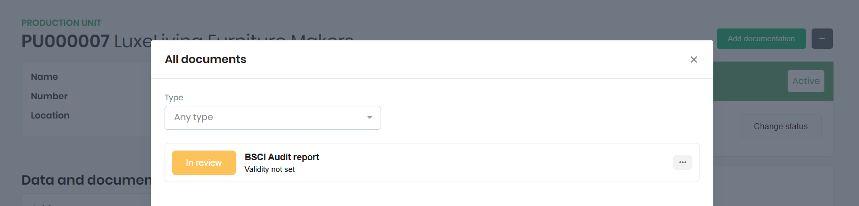 Nếu bạn chọn ba dấu chấm trên một tài liệu trên trang nhà cung cấp hoặc đơn vị sản xuất, bạn có thể chọn "lưu trữ tài liệu", "xóa tài liệu" hoặc "xem tất cả". Nếu bạn chọn "lưu trữ tài liệu", tài liệu sẽ được chuyển đến kho lưu trữ, nơi bạn luôn có thể tìm thấy.